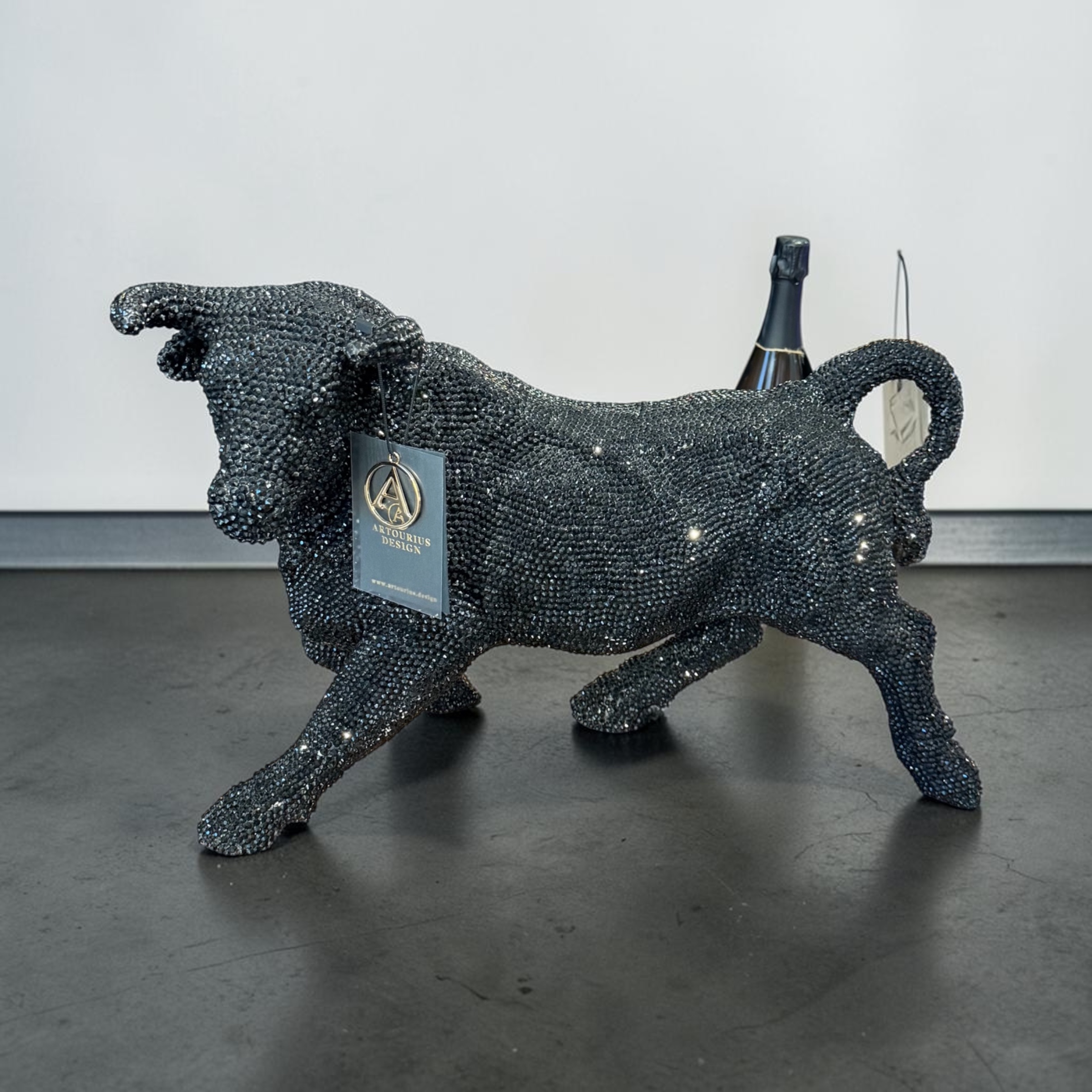 Die dynamische Haltung des Stiers in Kombination mit der edlen, schwarzen Kristalloptik verleiht der Figur eine besonders luxuriöse Ausstrahlung. Ein echter Blickfang für moderne Interieurs.